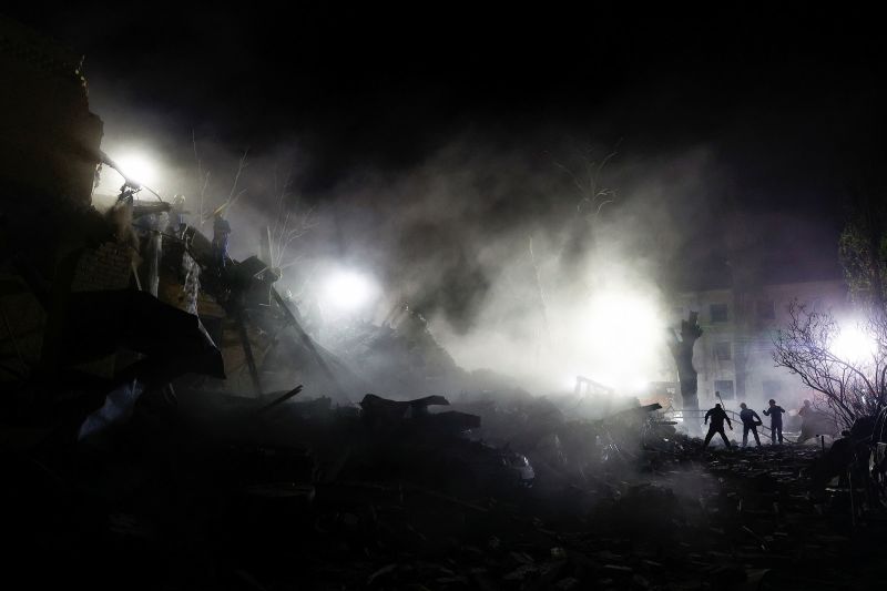 Engineers, rescue workers and recovery dogs are searching for people believed to be trapped under the rubble of a home destroyed by the strikes in the Sviatoshyn district, said Ukraine’s interior minister, Ihor Klymenko.